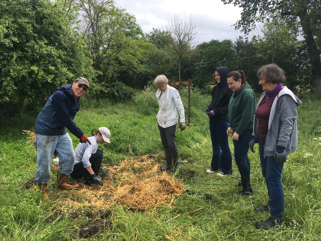 Les plantations de printemps ont bien commencé avec une équipe de bénévoles pleine d'entrain et d'humour malgré la pluie battante par moment ! Myrtilliers, framboisiers, fraisiers, digitales ont été plantées, un petit coup de débroussaillage par-ci par-là, re-positionnement des tuteurs, et hop !